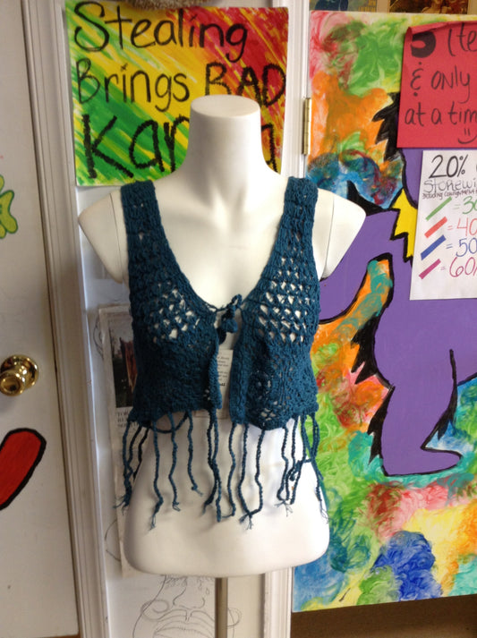 Womens Crochet Zig Zag Tiered Fringe Dress
