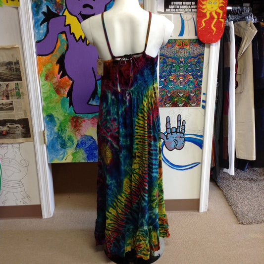 Womens Tie Dye Tie Back Spagetti Strap Tie Dye Dress