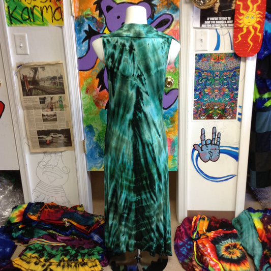 Womens Tie Dye Tie Up Front Sleevless Trench Coat