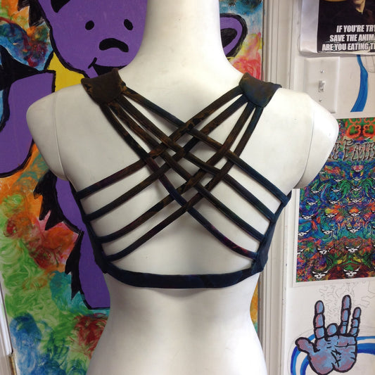 Womens Tie-Dye Moth Print Rainbow Tie-Back Halter Top