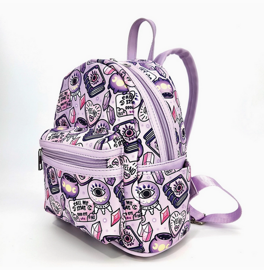 Spooky Witch Girl All-Over Pattern Vinyl Mini Backpack