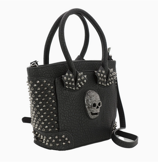 Metal Skull Vinyl Studded Spike Satchel Bag