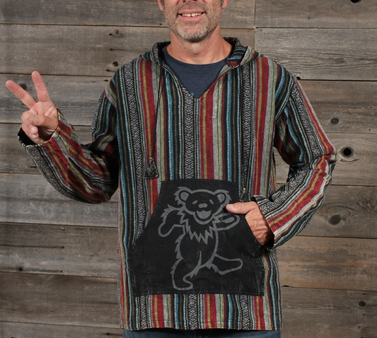 Grateful Dead Dancing Bear Hand Embroidered Striped Hoodie