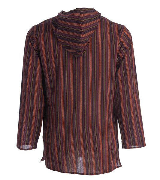 Mens Striped Cotton Button Hood Long Sleeve Shirt