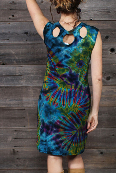 Women's Rayon Spandex Tie-Dye Circle Neckline Slit Leg Short Dress