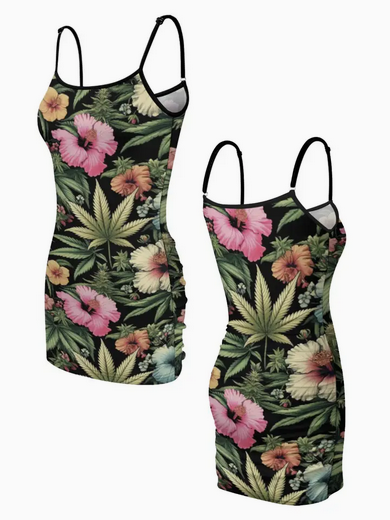 Women's Poly Spandex Floral-Printed Racerback High Neck Cami Dress