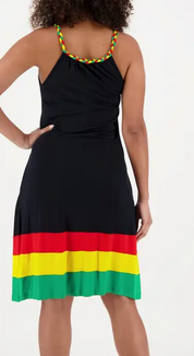 Women's Crew Neck Braided Neckline Straps Rasta Dress