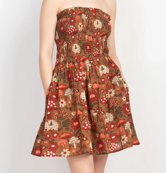 Women's Cotton Mushroom Print Sleeveless Stretch Mini Dress