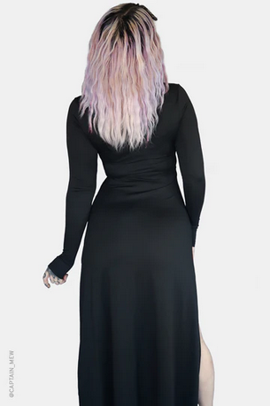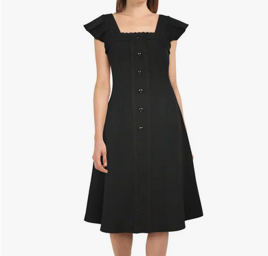 Women's Polyester Gothic Ruffled Shoulders Button Dress