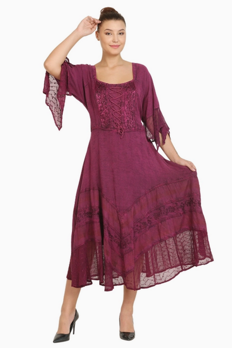 Women's Rayon Celtic Cap-Sleeve Acid Wash Dress