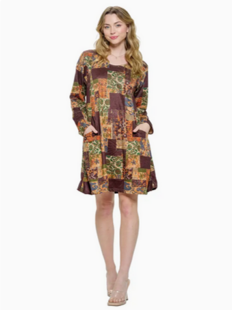 Women's Boho Floral Patchwork Printed Pocket Dress
