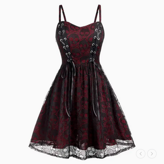Women Vintage Gothic Lace Skull Print Strap Sling Dress