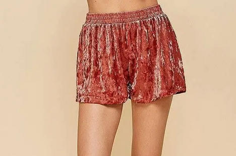 Women's Crushed Velvet Shorts with Elastic Waistband