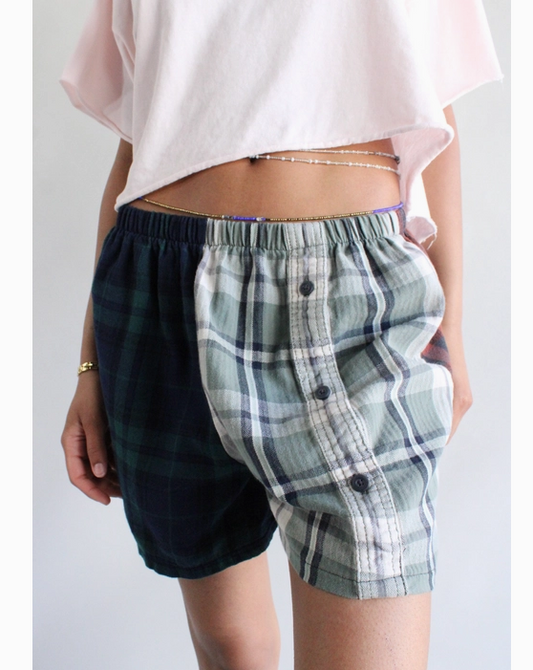Women's Cotton Patchwork Elastic Waist Mega-Short Shorts