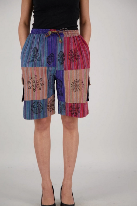Women's Rayon Spandex Tie-Dye Square Patchwork Booty Shorts