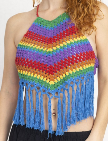 Womens Cotton Vintage Rainbow Fringe Crochet Top