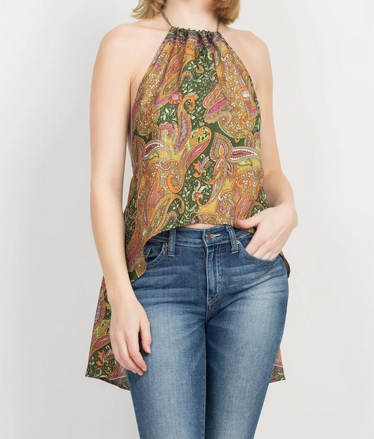Women's Poly Silk Paisley Floral Backless Tie-Back Halter Top