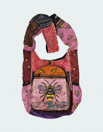 Cotton Bees All Over Print Patchwork Hobo Bag