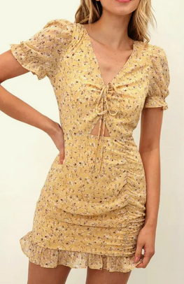 Women's Drawstring Neck Ruffled Open-Back Mini Dress
