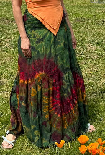 Women's Flat Rayon Mudmee Tie-Dye Smocking Tube Top Tiered Long Dress/Maxi Skirt