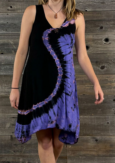 Women's Rayon Spandex Lilac Tie Dye Cap Razor Cut Braid Short Dress
