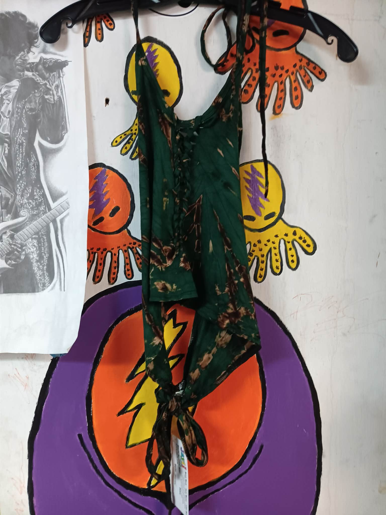 Women's Rayon Spandex Tie-Dye Front Braided Tie-Back Halter Top